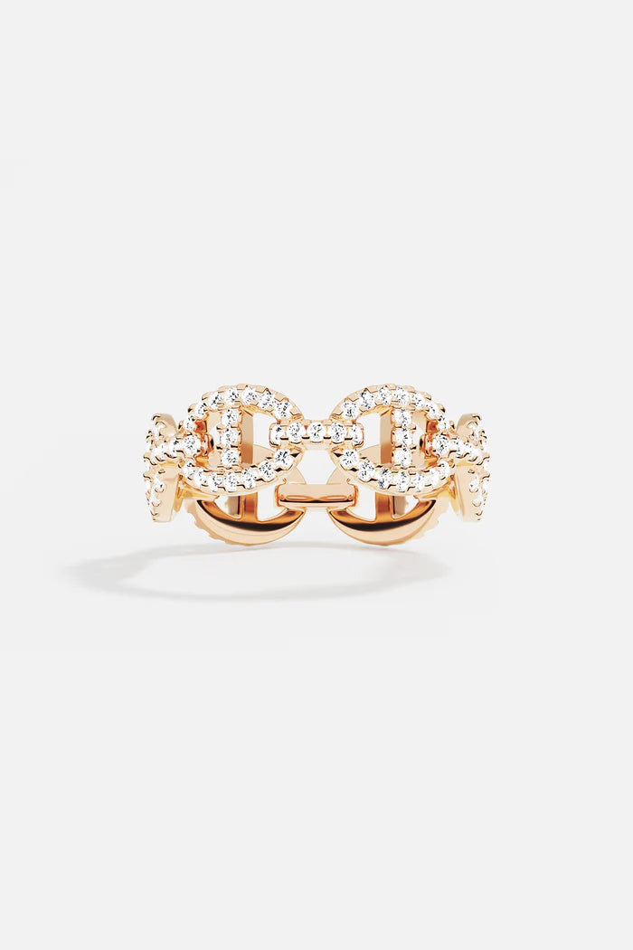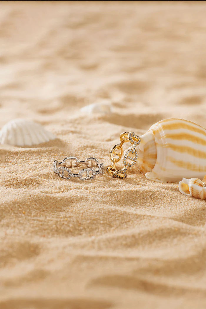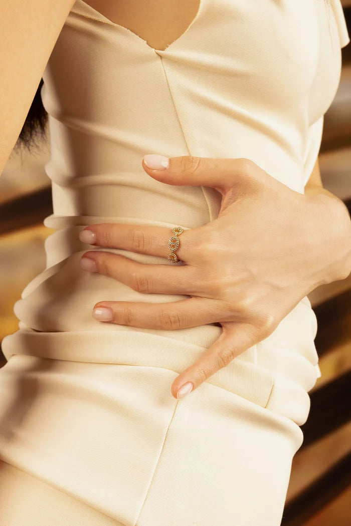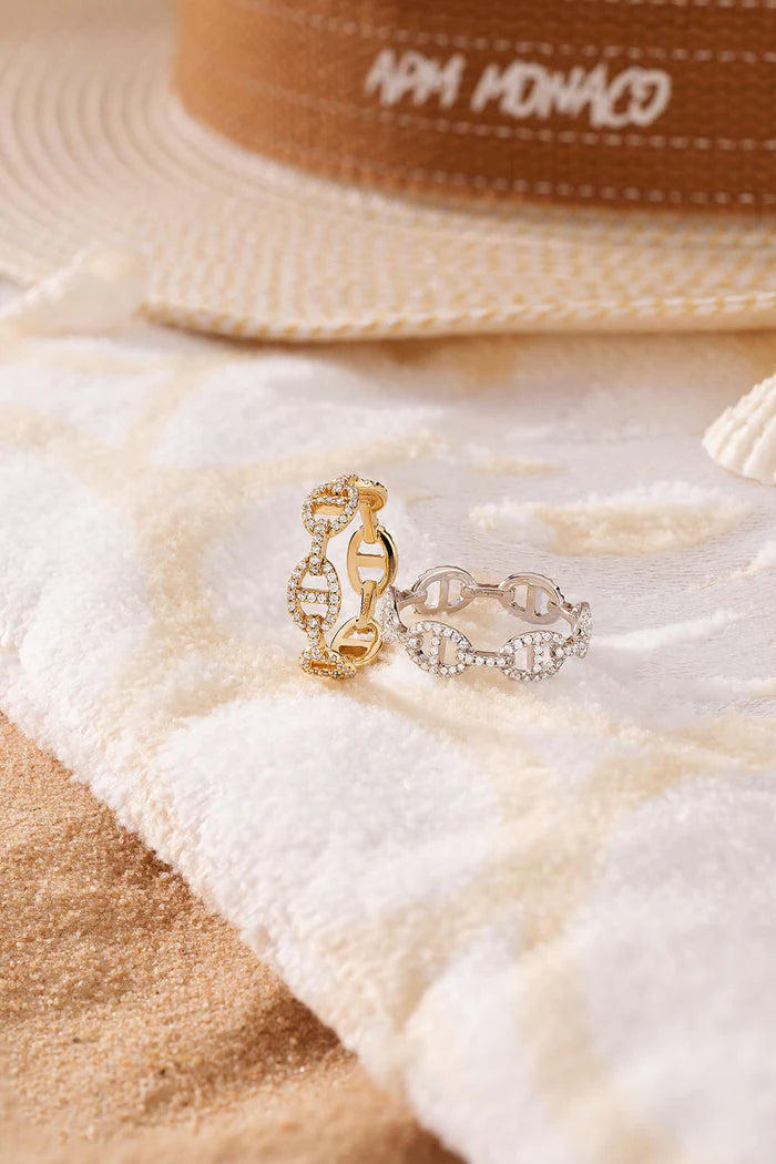 This ring is handcrafted from sterling silver and microset with white cubic zirconia.