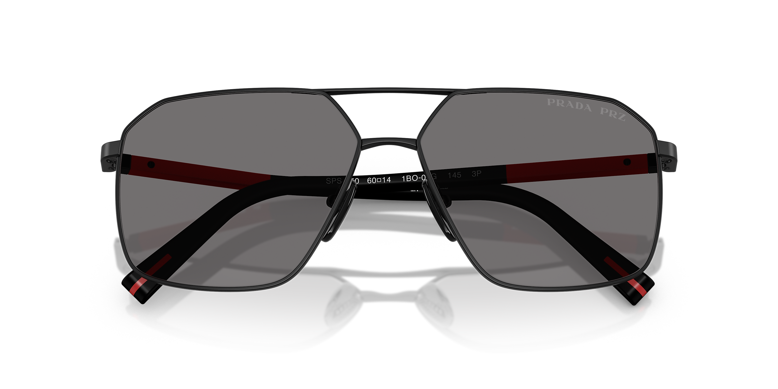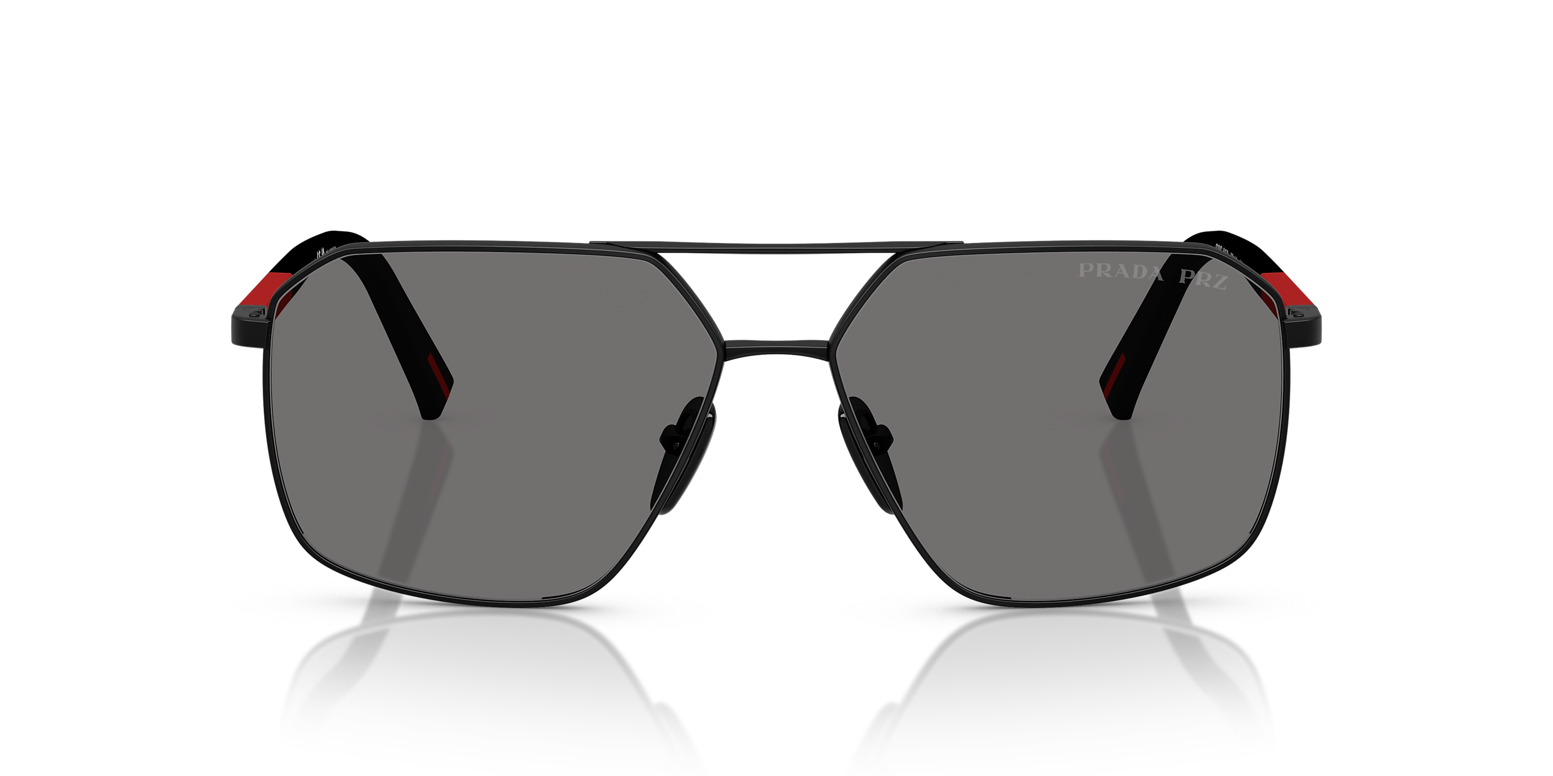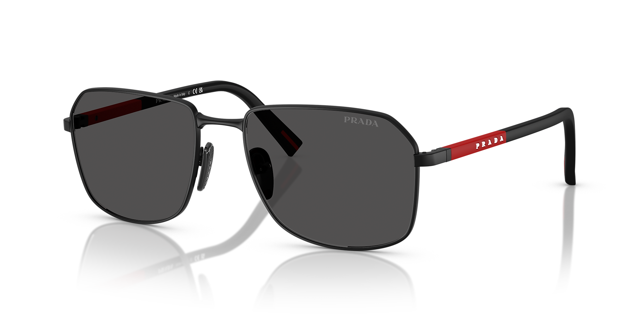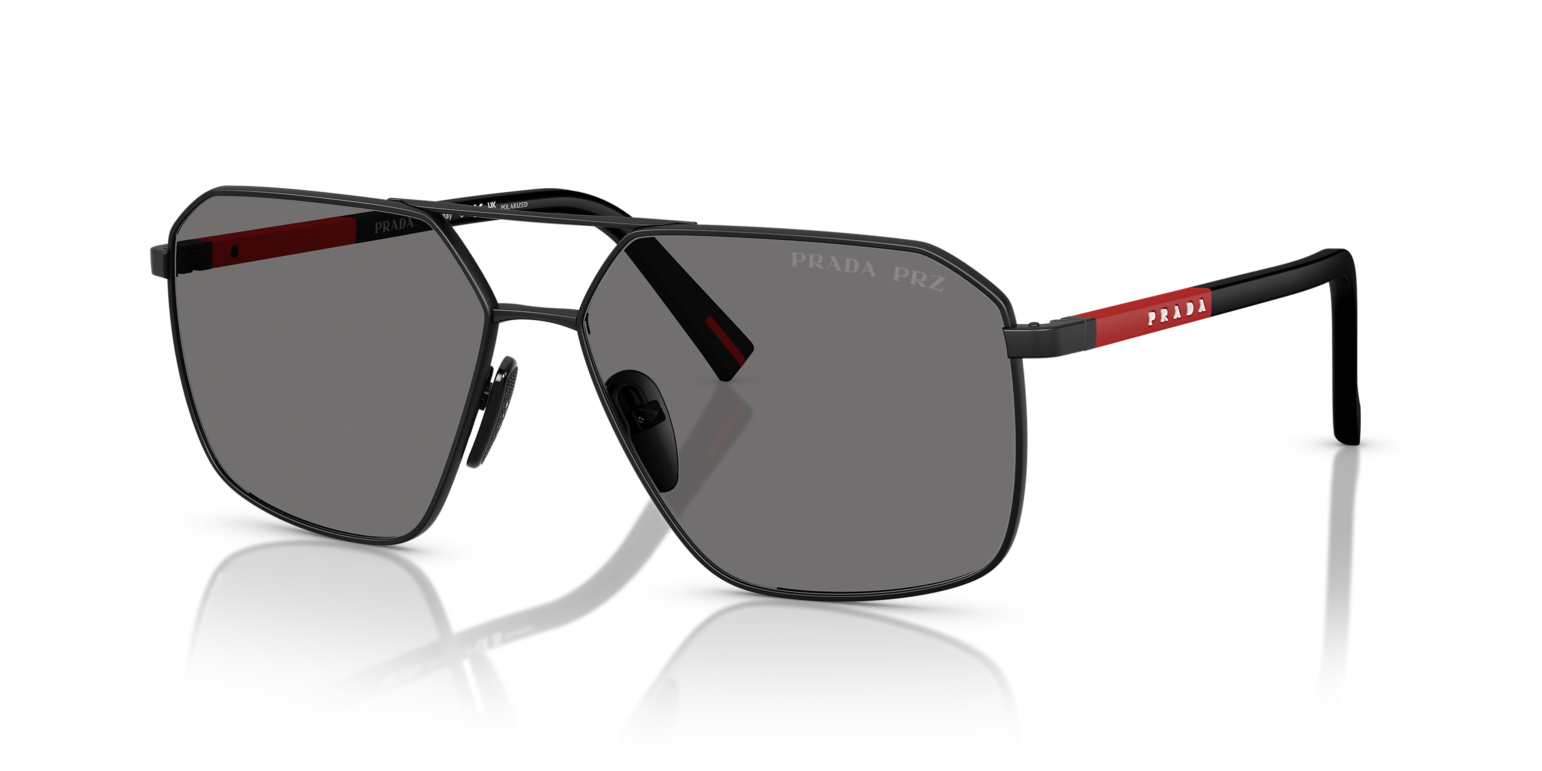 Prada Linea Rossa PS A50S are an iconic model, featuring an irregular shape and a matte black color. The solid dark grey polarized lenses provide both style and functionality, while the metal frame ensures durability. Elevated by its innovative design, this pair offers comfort and versatility for everyday wear.